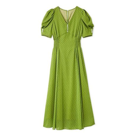 たっぷりとギャザーを寄せたパフスリーブで肩を華奢に見せてくれ、ウエストはシャーリングでキレイにフィットしてスタイルアップも。