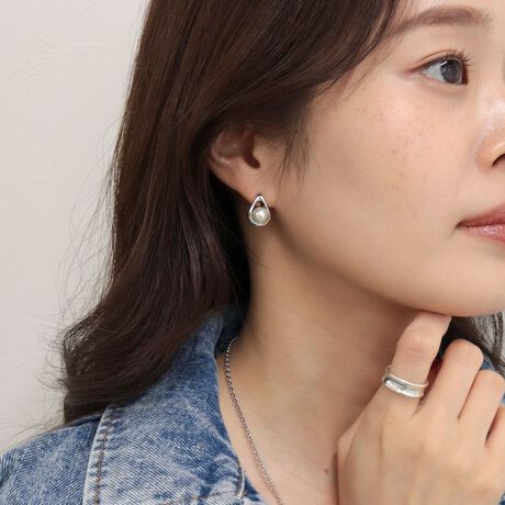 ・上品なドロップ型のメタルフレームにパールを組み合わせたピアス