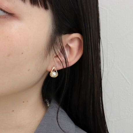 ・上品なドロップ型のメタルフレームにパールを組み合わせたピアス