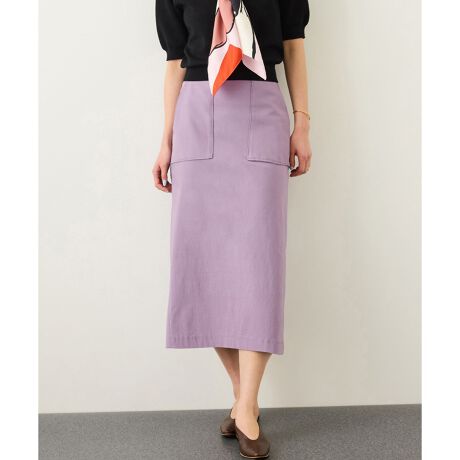 すっきりとした縦ラインを強調する、ポケット付きタイトスカート。