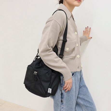 ・サイドのドローコードをギュッと絞ると巾着型のシルエットに