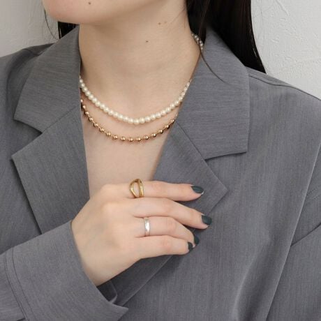・ボールチェーンとパールを繋げたトレンド感と高級感を兼ね備えたデザイン