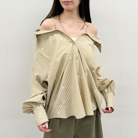 ■刺繍×ストライプで差がつく、2wayオフショルシャツ■