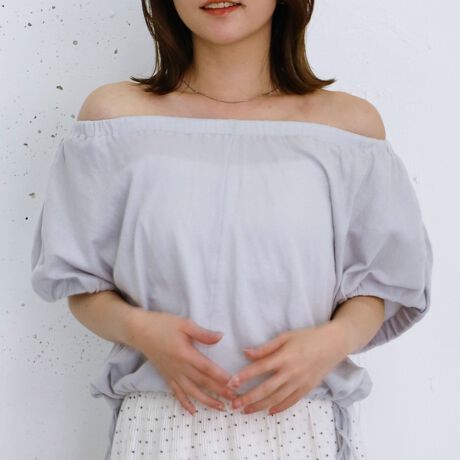 ・襟ぐりにぐるっとゴムが入った、オフショルにもできる2wayトップス