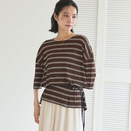 軽やかなシアー素材にボーダー柄を落とし込んだデザインTシャツ
