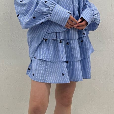 ■刺繍×ストライプで映える、ミニスカート■