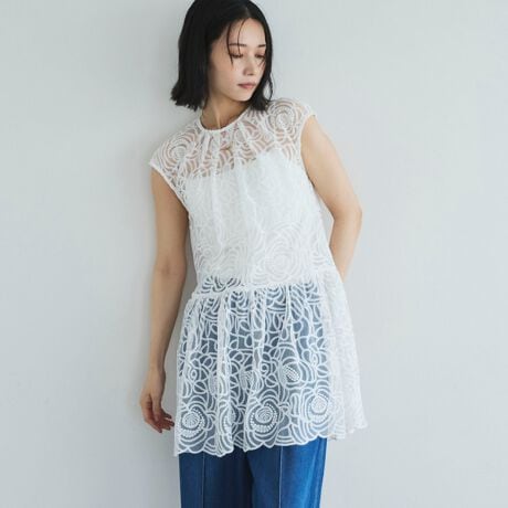 レース素材が華やかさを添え、1枚でコーディネートの主役になるアイテム