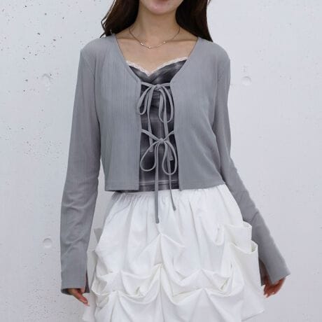 ■リボン×チェックで魅せる、レイヤードキャミセット■