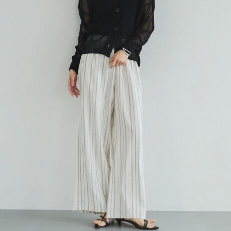 軽やかで涼しげな印象を与える、リネン混ストライプパンツ