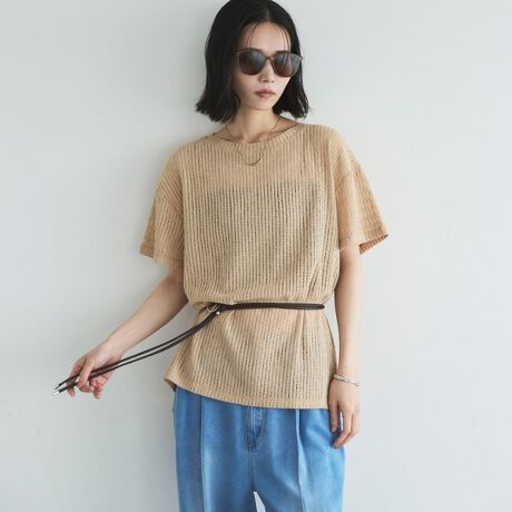 軽やかなシアーメッシュ素材を使用したデザインTシャツ