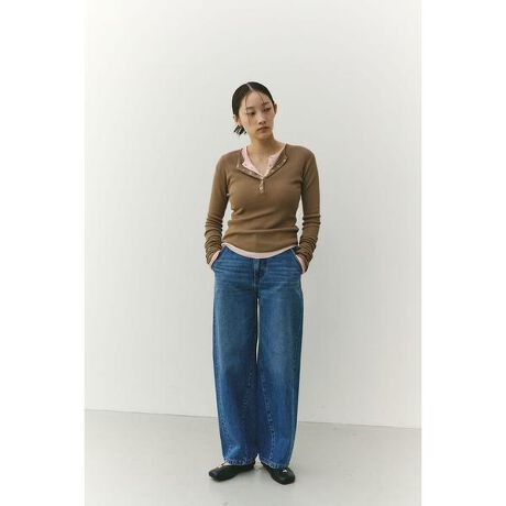 モデル身長166cm(Mサイズ着用)程よく立体的なシルエットに仕上げたカーブデニム。ヒップラインや脚のラインなど気になる部分をカバーしながら、裾にかけて丸みがあり広がりすぎないのでデイリーに使いやすい一枚です。ストレッチなし、透け感なし。【お手入れ方法】マシンウォッシュ可※デニムの特性上、着用や洗濯により退色し独特な色変化が生じます。・雨や汗等の湿った状態、着用や洗濯、クリーニングによって他の衣類、雑貨、家具等に色落ちします。・白・淡色との組み合わせは避けて下さい。