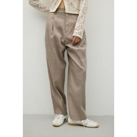 モデル身長175cm(Mサイズ着用)フロントタック入りのストレートシルエットパンツ。しっかりとしたハリのあるツイル素材を使用しているので、ジャケットのシルエットを綺麗に保ち、しわにもなりにくい一枚。日常使いからフォーマルな場面まで幅広く着用いただけます。スタミキ定番のブラックに加え、こだわりの春らしいオリジナルベージュストライプ柄と無地ブルーカラーの3色展開。500JSA30-0711(シームデザインテーラードジャケット)とセットアップ着用可能。透け感なし、ストレッチややあり。【お手入れ方法】手洗い可