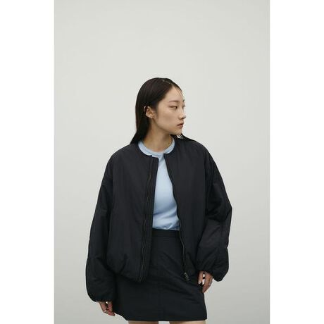 [型番:500JSB30-0351]モデル身長163cm(FREEサイズ着用)ステッチレスですっきりとさせた上品見えする中綿ブルゾン。ポリエステルの中綿を使用しているので軽やかさと着心地の両方を叶えた一枚。袖口や裾はふんわりとした丸みのあるフォルムが愛らしいバルーンシルエットで仕上げました。逆開ファスナー仕様でバランスよく着用いただけます。500JSB31-0361(パディングミニスカート)とセットアップ着用可能。ストレッチなし、透け感なし。【お手入れ方法】手洗い可