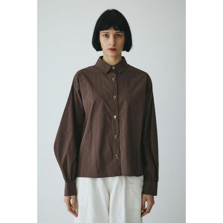 後ろ衿の小さな刺繍がワンポイントのストライプシャツシャツのシルエットにもこだわり、大きめの身幅と袖がポイント、1枚で他と差のつくアイテムに。レイヤードをして、衿や袖を出して楽しんでいただくのもおすすめ。シルクのような風合いのある素材を使用しているため、着心地も◎ロングシーズン楽しめる1枚です。エンブロイダリーオーバーシャツ[注意事項] ※画像の商品はサンプルです。実際の商品と仕様、加工が若干異なる場合があります。 ※画像の商品は光の照射や角度、お使いのモニター環境により、実物と色味が異なる場合がございます。 ※着用、お取り扱いの際は、アテンションタグをご確認ください。