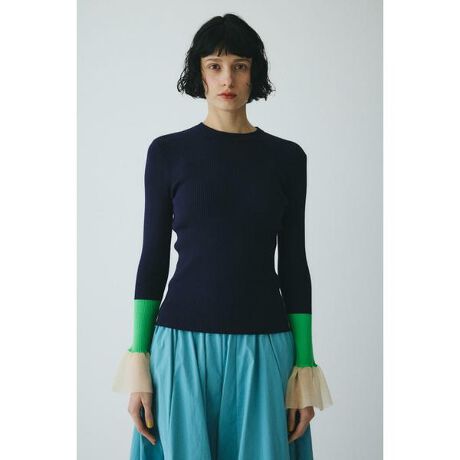□ポイントHeRINらしいカラーリングがアクセントになるニットトップス。袖口のフレア部分は異素材となっているため、表面変化も楽しめる1枚。□ディテールピタッとしたシルエットですが、体のラインを拾い過ぎず、1枚で着用してもお洒落度アップ。ボトムスを選ばず着用できます。□スタイリングカジュアルな組み合わせもキレイめにも着こなせる1枚。フレアスリーブニットトップス[注意事項] ※画像の商品はサンプルです。実際の商品と仕様、加工が若干異なる場合があります。 ※画像の商品は光の照射や角度、お使いのモニター環境により、実物と色味が異なる場合がございます。 ※着用、お取り扱いの際は、アテンションタグをご確認ください。トップスとしてはもちろん、インナーとしても活躍する万能アイテム。