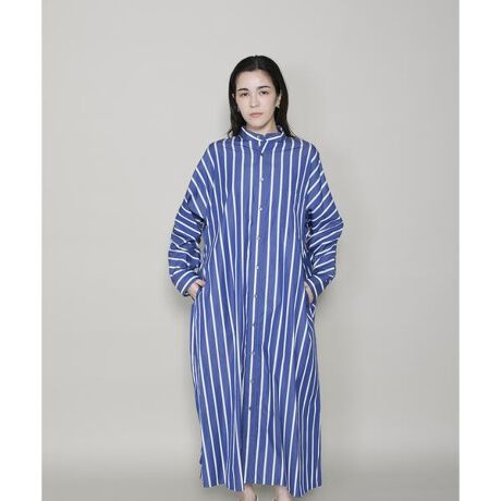 非常に細い番手の糸を掛け合わせたポプリン素材のワンピース。贅沢に身頃を1枚で仕立てられているので、肩幅の広い人や狭い人、どんな体型の方にも着ていただけます。ドレープがキレイに落ちるしなやかさと品格漂う上品さ、揺れるヘムが軽やかな表情がとても美しいデザイン。肌触りの良いドレスシャツ素材のワンピースとして1枚での着用ははもちろん、前をあけて羽織で着るのもおすすめです。袖口は折り返してラフな着こなしも叶います。お手持ちのベルトでウエストマークすればメリハリのあるスタイリングが完成。ワンピースの上からセーターをバサッと着たり通年楽しめるアイテムです。インパクトのあるブルーストライプ、縦長効果もあるすっきりとしたルックス。■前を全部開けて羽織としても活躍■しなやかで極上の肌触りと透明感のあるトップクラスのドレスシャツ素材■美しい表情と上品な存在感が印象的■洗いざらしでも気品のある表情に■手洗い可《TICCA/ティッカ》2016年、春夏コレクションよりスタート。着ていてとても気分の良くなってくるような服を、きちんとそろえて、自分のスタイルの基本にする。懐かしくて新しい。時間や流行をこえて、いつまでも存在しつづける服。ワークの意匠を持ちながらモード顔を見せる、タフさと上品さが備わった服。そんな気品を添えるニューベーシックを提案しています。■撮影商品実際の商品とはサイズや色味、素材、デザイン等の仕様が若干変更になる場合がございます。■照明の関係により、実際の製品とは色味が違って見える場合があります。またパソコン・スマートフォンなどの環境により、若干製品と画像のカラーが異なる場合もございます。