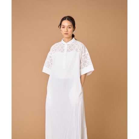 ■デザインシャツの凛々しさとレースの繊細さが融合されたワンピース。前後ヨークに総レースがあしらわれ、ほんのり透けるニュアンスがエレガントなアクセントをもたらします。■コーディネート1枚でスタイルが完成する主役級アイテム。フラットシューズを合わせて軽やかに着こなすのはもちろん、ヒールや華奢なアクセサリーをプラスしてレディに仕上げるのもおすすめです。■サイズ身頃はストンと落ちる洗練されたシルエットで、知的なクールさを演出します。■素材上品な艶感としなやかさを併せ持つ生地に繊細な刺繍とカットワークを施し、奥行きのある表情に。国内の産地で丁寧に仕上げた、〈TICCA(ティッカ)〉オリジナルのエンブロイダリーレースが使用されています。■ケア方法手洗い可(詳細は商品についている洗濯表示タグをご覧ください。TICCA 2016年春夏シーズンにデビュー。懐かしくて新しい、時間や時流を超えて、いつまでも存在し続ける服。ワークの意匠を持ちながらモードの顔を見せる、タフさと上品さが備わった服。そんな気品を添えるニューベーシックなブランドです。■撮影商品実際の商品とはサイズや色味、素材、デザイン等の仕様が若干変更になる場合がございます。■照明の関係により、実際の製品とは色味が違って見える場合があります。またパソコン・スマートフォンなどの環境により、若干製品と画像のカラーが異なる場合もございます。