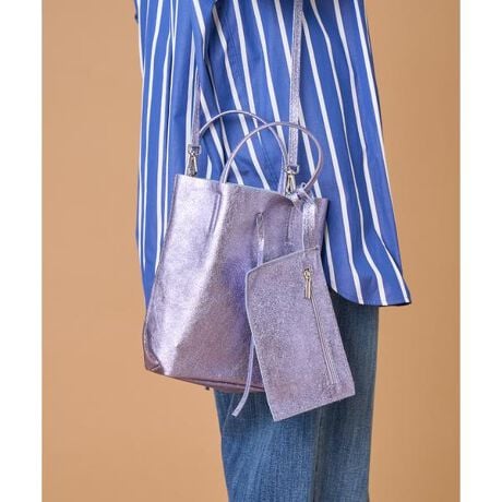 柔らかくリッチな質感のレザーにメタリック加工を施したミニトートバッグ。無駄のないシンプルなシルエットでデイリーユースしやすいデザインです。使い勝手の良いマチ付きで、底板を付けることで形が崩れにくいのも嬉しいポイント。ストラップは取り外し可能です。ペットボトル 〇A4サイズ ×13インチPC ×・ポーチ付き・ショルダーベルト取り外し可能■メーカー表記10210627ブラック:BLKグリーン:L/GRNラベンダー:LAVEピンク:PINKゴールド:GDシルバー:SV※付属の紐は固定されておらず、結び目がゆるくなると外れてしまう場合がございます。お気をつけてお使い頂くようお願い致します。※内側、ストラップ端がスエードまたは断ち切りの仕様のため、繊維が荷物等につく場合がございます。ご理解の上ご注文ください。※イタリアの製法で作られたインポート製品ですので、日本製品にみられる緻密な仕上がりではありません。※革の風合いや温かみの残る商品ですが、作業工程などで傷がついたりする場合もございます。特性をご理解のうえご注文ください。《MILLELA FIRENZE/ミレッラ フィレンツェ》地元トスカーナ州の高品質な素材と手作業にこだわった、イタリア・フィレンツェ発 のバッグブランド。 トレンドと機能性、シンプルかつ遊び心を加えたデザインですべての女性のライフスタイルに寄り添うアイテムを提案します。■サンプル撮影商品画像の商品はサンプルです。実際の商品とはサイズや色味、素材、デザイン等の仕様が若干変更になる場合がございます。■カラーについては、可能な限り実際の商品に近いカラーで撮影をおこなっておりますが、照明の関係により実際の製品とは色味が違って見える場合があります。またパソコン・スマートフォンなどの環境により、若干製品と画像のカラーが異なる場合もございます。現物と画像のカラー差異については返品理由となりませんので、予めご了承ください。■サイズ表記はあくまで目安となります。