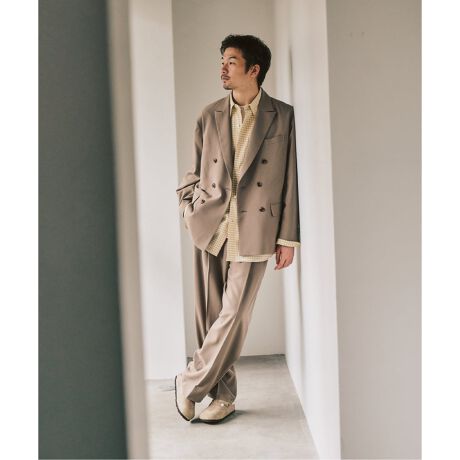ジャケットは程よく肩を落としたダブル仕様で、抜け感のある今のムードにフィット。