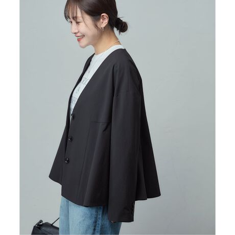 ジャーナルの定番素材リネンナイロンストレッチで、新型のジャケットが登場。ナイロンストレッチ素材にリネンをブレンドしてナチュラルな表情を出したジャーナルのオリジナル素材。ストレッチ性と撥水性、イージケア性などの機能を備えています。サッと羽織って着映えするフレア型のノーカラージャケット。同素材のパンツのご用意もあるので、セットアップで着こなすことも。