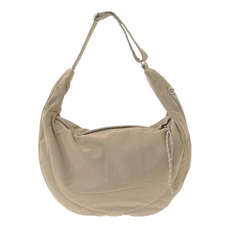 [型番:06001396900]トレンドライクな三日月型のワンショルダーバッグ。ドロストコード付きでシルエットを変えるアレンジをお楽しみいただけます。軽量素材とたっぷり荷物が入る収納力も嬉しいポイント。ボディラインに馴染むフォルムで様々なコーディネートに合わせやすい万能アイテムです。※モデル着用画像は、光の当たり具合で色味が違って見える場合がございます。※お使いのモニター環境によって商品の色味が違って見える場合がございます。