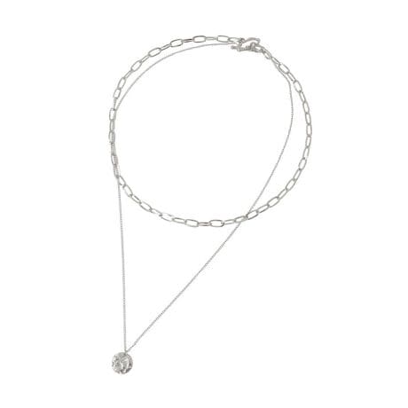 [型番:06001453700]太さの異なるチェーンを組み合わせたお洒落な2連ネックレス。汗や水、変色に強いステンレス素材で仕立て、耐久性に優れているのでデイリー使いに最適です。揺れ動くコインモチーフや着脱の簡単なマンテル金具もポイント。ワントーンで様々なテイストの着こなしに合わせやすいおすすめのアイテムです。※モデル着用画像は、光の当たり具合で色味が違って見える場合がございます。※お使いのモニター環境によって商品の色味が違って見える場合がございます。
