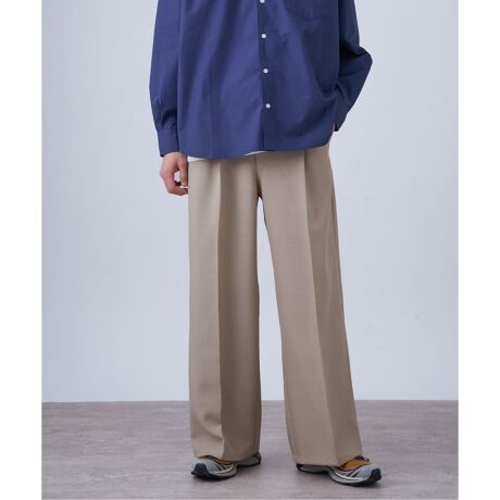 ウエスト周りはすっきりとさせつつ、渡りから裾にかけて大胆な太さを持たせることで、モードかつリラックスした雰囲気を両立。