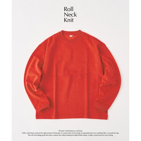 ロールネック仕様のニットクルー。柔らかな風合いと、程よいハリ感を併せ持ち、カットソー感覚で気軽に取り入れられる一着です。