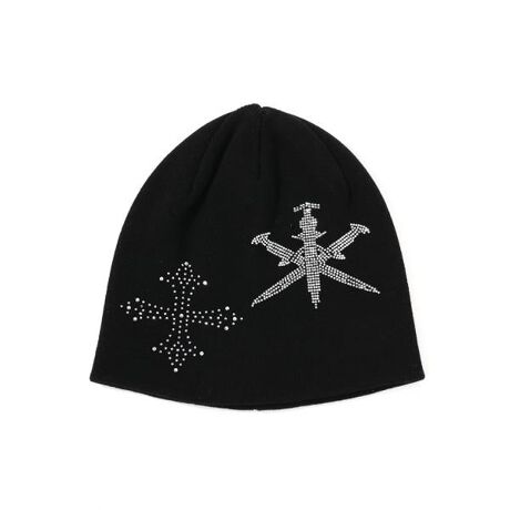 ダガークロスモチーフをラインストーンで表現した存在感抜群のビーニー。