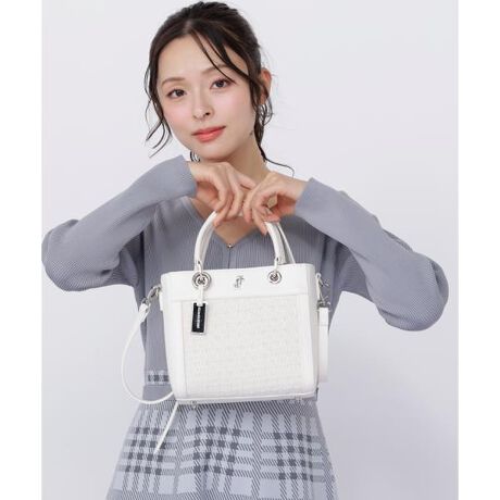 ツイード素材とスムース素材を組み合わせた軽やかなトートバッグ。異素材のコントラストに、丸ハンドルやメタルパーツがエレガントアクセントになっています。ショルダーストラップは取り外しできる2WAY仕様。春のコーディネートに映えるホワイトとブルーの2色展開です。※撮影時照明の関係により、色味が違って見える場合がございます。またパソコン・スマートフォンなどの環境により、若干製品と画像のカラーが異なる場合もございます。予めご了承ください。商品の色味は、商品単品画像をご参照下さい。※商品画像はサンプルのため、色味やサイズ等の仕様に変更がある場合がございますので、予めご了承ください。