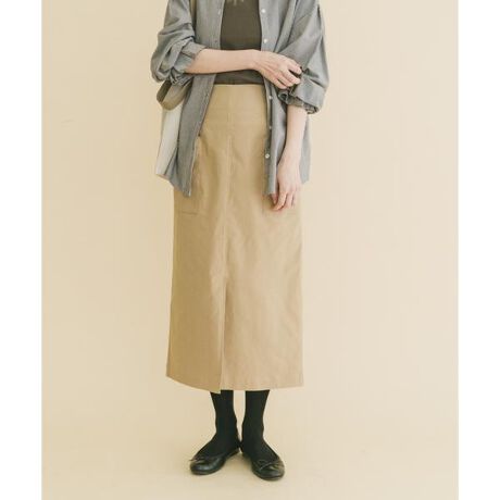 高いストレッチ性を備えた素材で、タイトスカートながらノンストレスな穿き心地を実現。足捌きがよく、長時間の着用や日常の動作も快適にこなせます。まっすぐ落ちるIラインシルエットと程よい生地の厚みが、身体のラインを拾いにくく、下半身をすっきりと演出。腰まわりのパッチポケットがさりげないアクセントとなり、オンオフ問わず活躍する、信頼の定番スカートです。