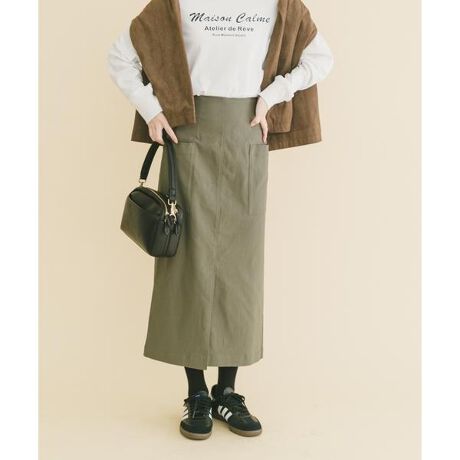 高いストレッチ性を備えた素材で、タイトスカートながらノンストレスな穿き心地を実現。足捌きがよく、長時間の着用や日常の動作も快適にこなせます。まっすぐ落ちるIラインシルエットと程よい生地の厚みが、身体のラインを拾いにくく、下半身をすっきりと演出。腰まわりのパッチポケットがさりげないアクセントとなり、オンオフ問わず活躍する、信頼の定番スカートです。
