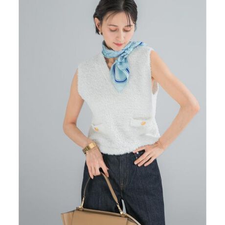 【素材感で装いを引き立てる、ツイードニットベスト】