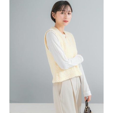 【素材感で装いを引き立てる、ツイードニットベスト】