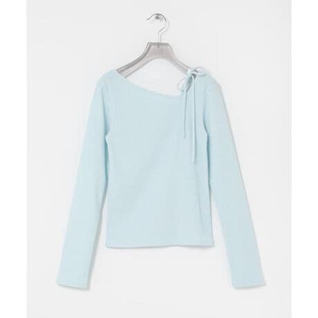 デコルテから肩にかけてのラインを美しく魅せるアシンメトリーなカッティングに、華奢なリボンディテールを添えて、モードさと女性らしさを絶妙なバランスで表現しました。