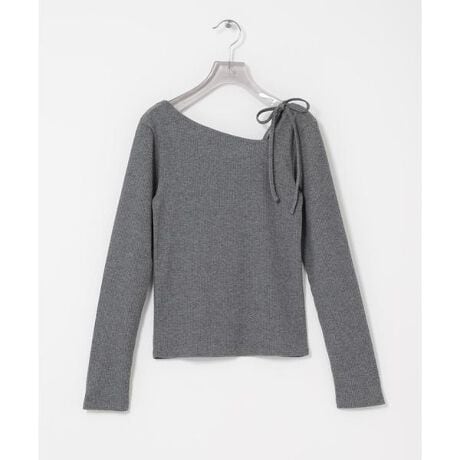 デコルテから肩にかけてのラインを美しく魅せるアシンメトリーなカッティングに、華奢なリボンディテールを添えて、モードさと女性らしさを絶妙なバランスで表現しました。
