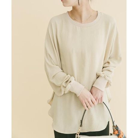 たっぷりとした分量感で身体のラインをやさしく包み込み、リラックスした着心地と自然な体型カバーを叶えるドルマンブラウス。袖口にはリブ切り替えを施し、たくし上げることでボリューム感のあるスリーブシルエットにアレンジも可能です。軽やかな素材感でシワになりにくく、デイリーにはもちろん、少しきれいめなシーンにも対応する着回し力の高い一枚に仕上げました。