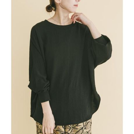 たっぷりとした分量感で身体のラインをやさしく包み込み、リラックスした着心地と自然な体型カバーを叶えるドルマンブラウス。袖口にはリブ切り替えを施し、たくし上げることでボリューム感のあるスリーブシルエットにアレンジも可能です。軽やかな素材感でシワになりにくく、デイリーにはもちろん、少しきれいめなシーンにも対応する着回し力の高い一枚に仕上げました。
