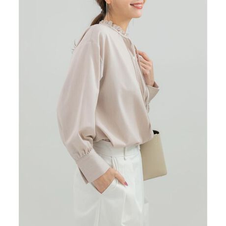 ・フリルネック×ボリュームスリーブでフェミニンな印象