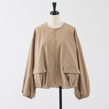 [型番:60520102000]《POINT》裾と袖口のギャザーでほどよい丸みをプラス。カジュアルになりすぎず、女性らしく着られる一着です。コンパクトな着丈で、ワイドからテーパード、細身までボトムを選ばず好バランス◎デニムなどのカジュアルスタイルはもちろん、落ち着いた生地感なので、アクセサリー次第で綺麗めにも対応できます。毎日に取り入れやすく、着回し力の高いブルゾンです。