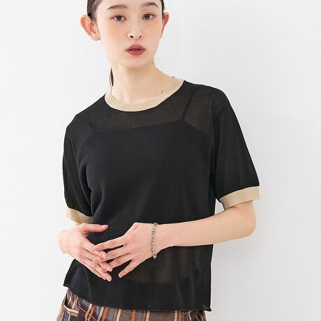 リネンのような風合いの糸を使用した、ほどよい透け感のあるニット素材で仕立てたリンガープルオーバー。