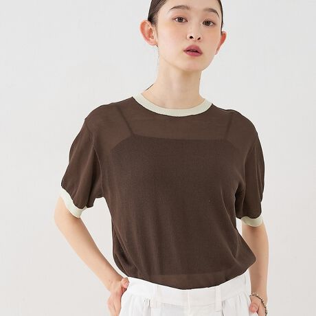 リネンのような風合いの糸を使用した、ほどよい透け感のあるニット素材で仕立てたリンガープルオーバー。