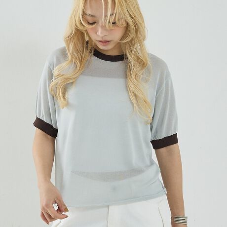 リブの配色(リンガー仕様)が顔まわりと袖口にアクセントを与え、カジュアルすぎない洗練された雰囲気に仕上げています。