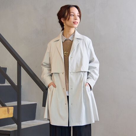 スプリングコートとしてはもちろん、秋冬シーズンにも着られるロングコート。シンプルですっきりした仕立てがハンサムな印象。