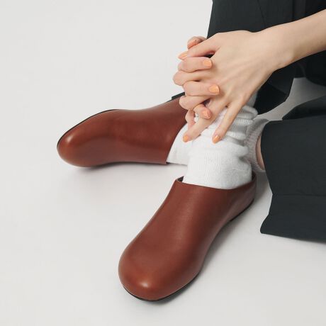ワイドシルエットのデニムやパンツと好相性で、足元からちらっと見えるシルエットが新鮮な印象に導きます。