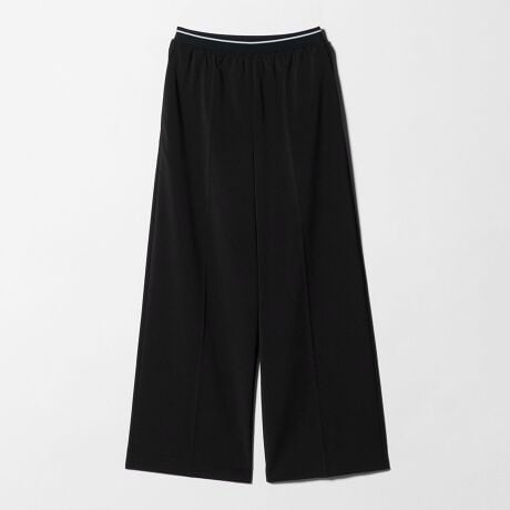 ウエストゴムのラインデザインが目をひくワイドパンツ。