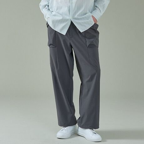 ゆったとりとしたワイドシルエットのパラシュートパンツ。