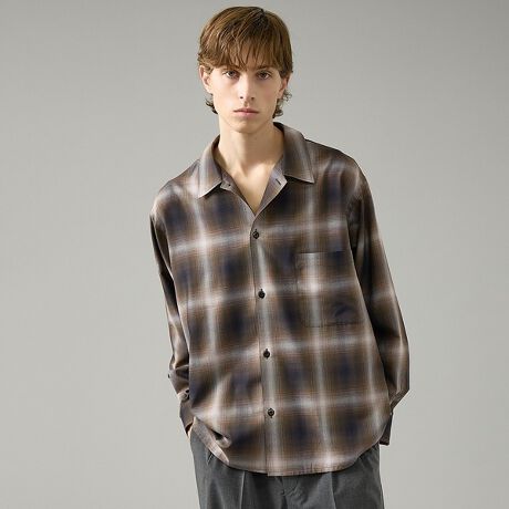 リラックスフィットのオープンカラーシャツ。