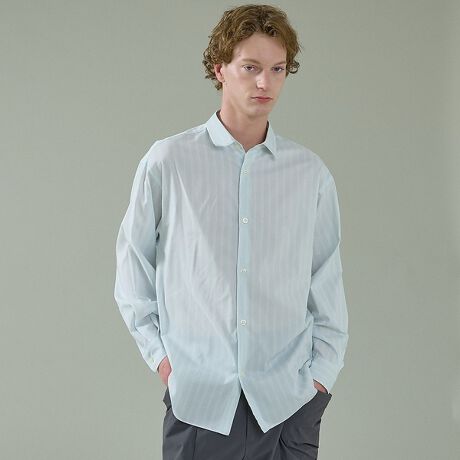 ドレスシャツのように上品な衿デザインで、きちんと感のあるシャツ。