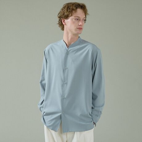 バンドカラーをベースに、首元に程よい抜け感を与えたスキッパーデザイン。